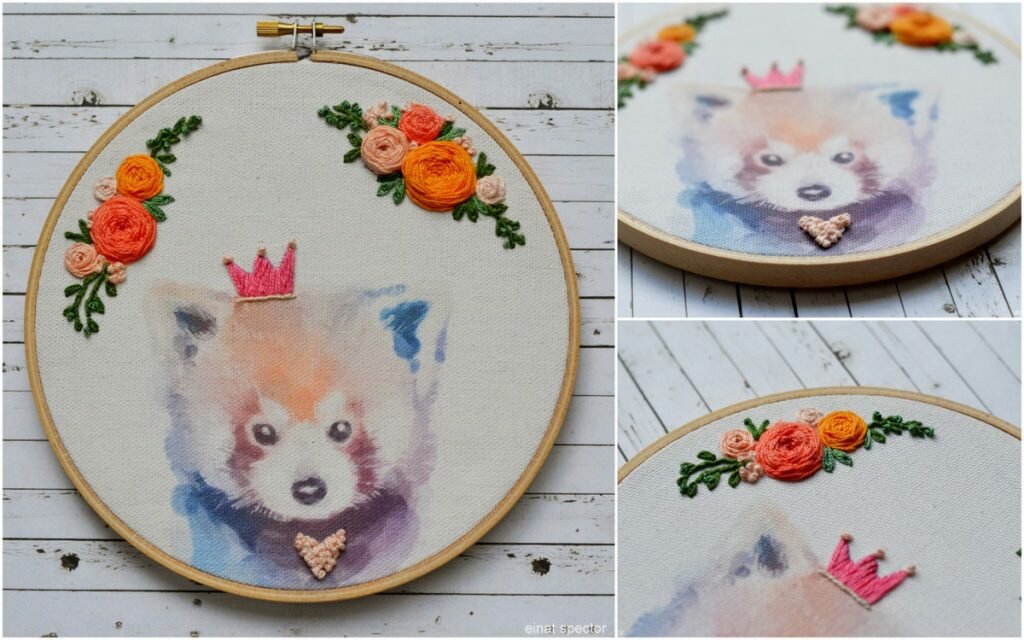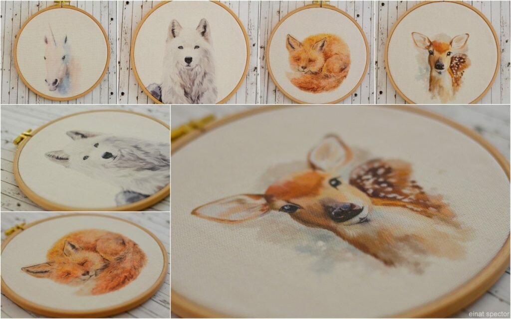 הרקמה נעשית על איורים של חיות קסומות, והופכת להיות עיטור של התמונה.