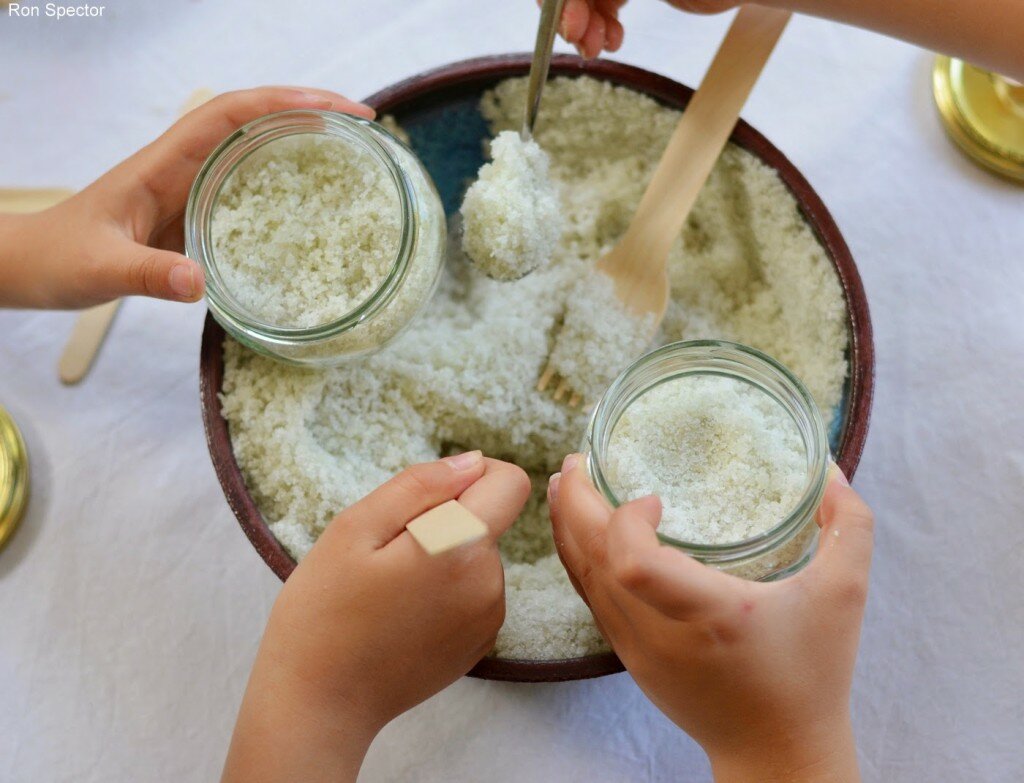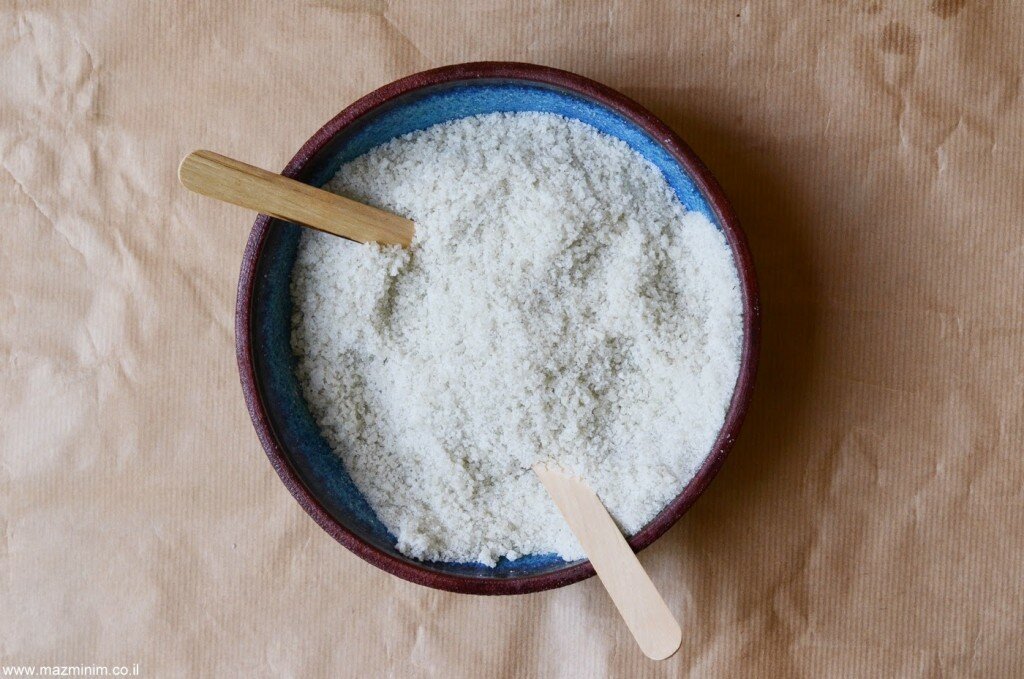 מלח אטלנטי גס ישמש כבסיס להכנת הפילינג שלנו