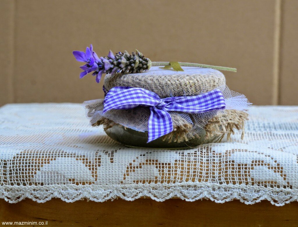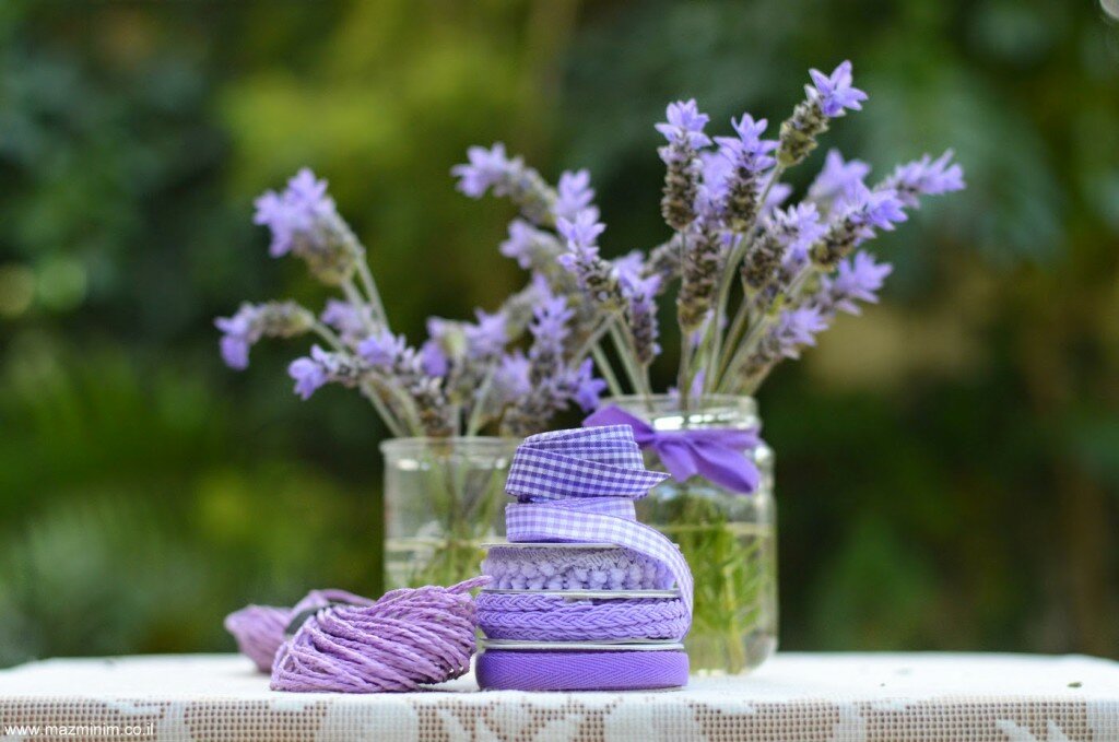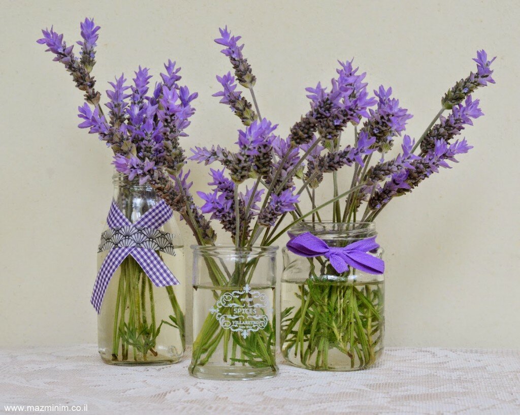 סידרנו את הענפים הריחניים של הלבנדר בצנצנות שנותרו מליל הסדר