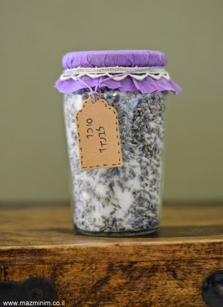 ליצירת מלח אמבט בריח לבנדר- מערבבים מלח מים המלח עם שמן אתרי ביחס של 10 טיפות שמן לכל 50 גר' מלח.