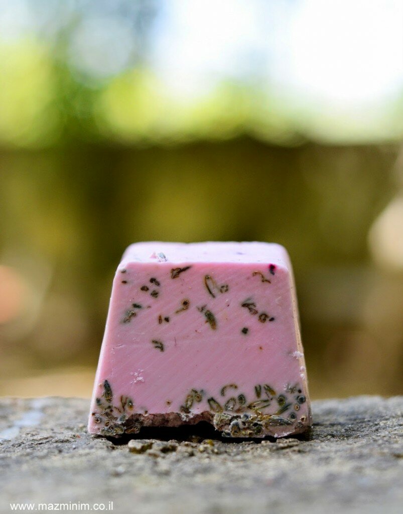 סבון בריח לבנדר בו זרועים פרחים יבשים
